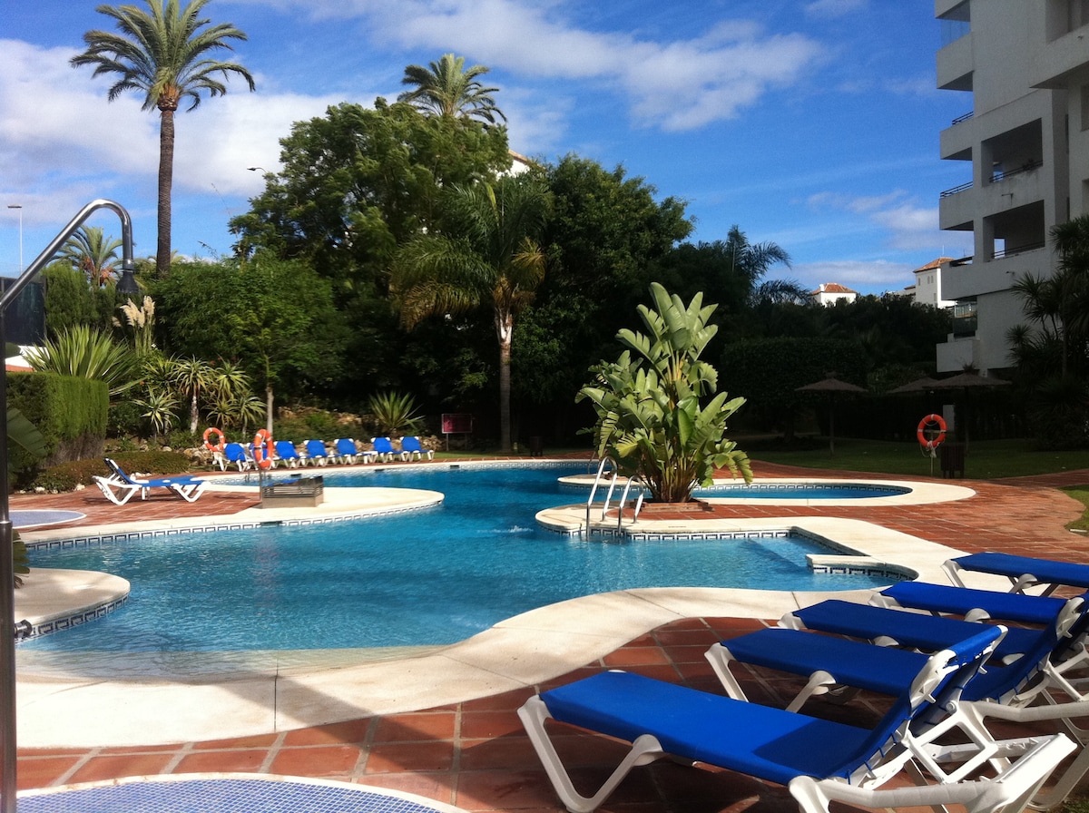You will love the situation of the apartment, The apartment is 50m from the beach and Puerto Banus promenade. It's all next door! completely renovated; It has a small private garden, where you can sunbathe all afternoon. There is a paddle court and a huge private pool. It includes an underground parking from which you will directly access the house by elevator. free WIFI. You will love my place because of the light, the cozy space, and above all perfect location, you don't need a car at all;