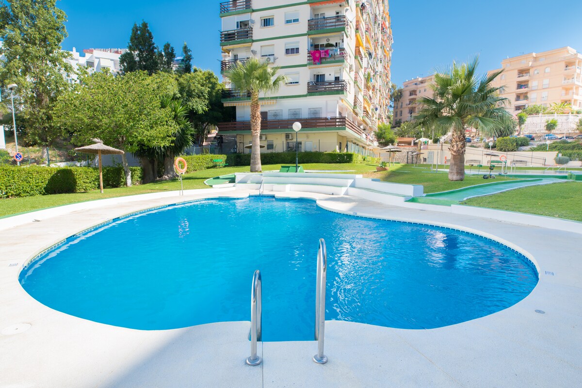 Homey and bright modern studio on the topmost floor, offering breathtaking views from the balcony over the mountains and Benalmadena, as well as the sea (side view). Beautiful sandy beaches are only in 250 meters away from the apartment. There are 3 outdoor pools, a garden, a restaurant, and a supermarket on site. Great location: numerous restaurants and bars, supermarkets are a step away. All main attractions are neaby: Paloma Park, Benalmádena port, Selwo Marina, Arroyo de la Miel, etc.