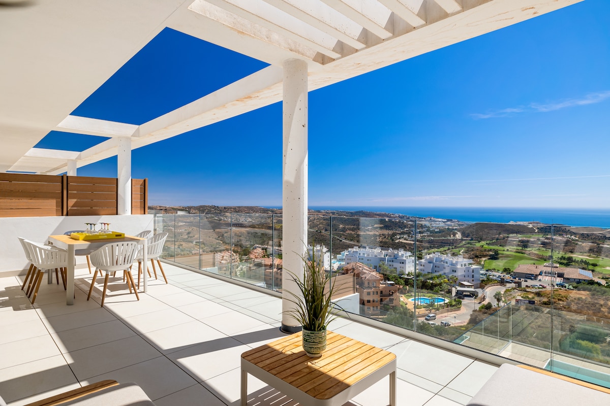 Brand New! A beautiful luxury penthouse located in the stunning village of Mijas Pueblo. * The Best Ocean & Mountain views that the Costa del Sol has to offer * Relax on your own private roof terrace including a hot tub, day bed & sunloungers. Both the roof top terrace and the dining terrace is a great space for entertaining, relaxing & enjoying the amazing sunset and views The penthouse has a luxury décor with open plan living, both bedrooms have sea views & comfortably sleeps 4 people