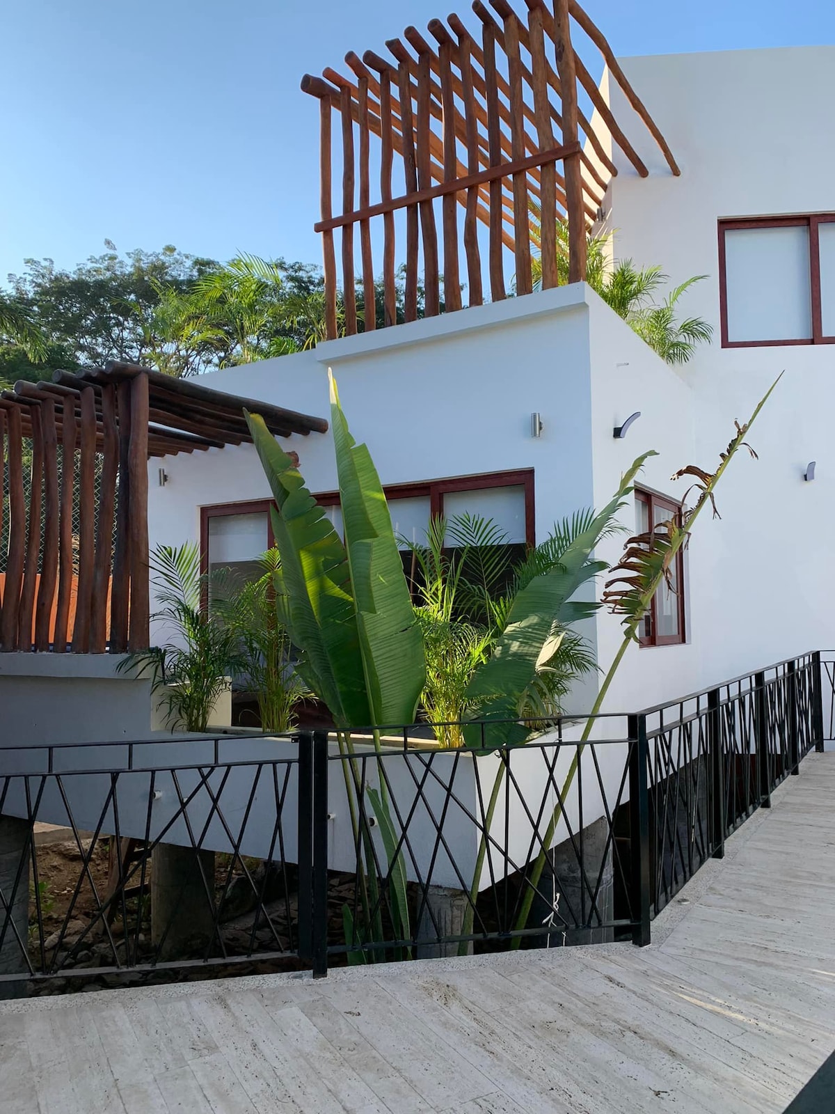 Este encantador y exclusivo lugar para quedarte en nuestra súper confortable suite. Completamente equipada con cocina, sala y comedor. Suite Surf cuenta con una muy amplia habitación caben hasta 4 personas, aire acondicionado, cama king size, cama individual y sofá cama. dentro del Hotel-restaurant Mi Jardin Troncones, donde maximo se pueden hospedar 10 personas lo cual hace de este lugar un espacio perfecto para descansar a solo un minuto caminando de la playa. No aceptamos menores de 4 años.