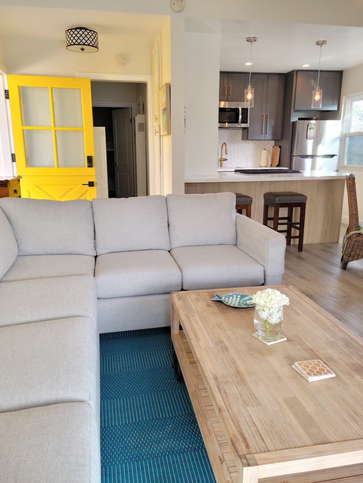 This upstairs unit is beautiful and modern. It has an open concept living / dining area that is great for family gatherings. The kitchen is fully equipped with all of the basics to cook your family a meal after a long beach day. We provide filtered water. There is central AC (don't be fooled you do need it in Newport). The wrap around balcony has peek a boo views of the ocean. The bedrooms are very comfortable with quality mattresses/linens, TVS and ceiling fans. License# SLP12759 (up)