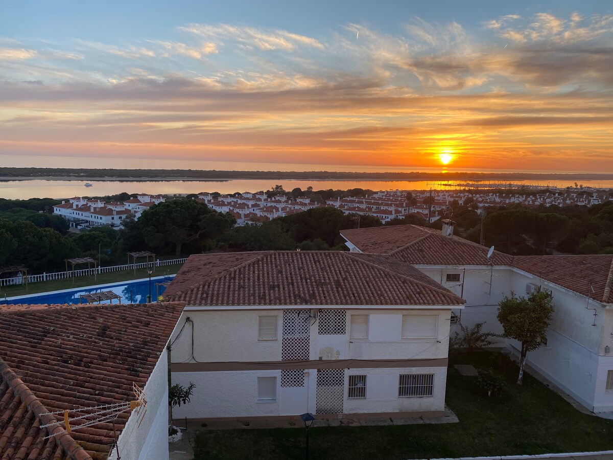 Apartamento espaçoso para férias, em zona calma e perto de tudo o que precisa. Localizado em Santa Luzia-Tavira. Composto por: 1 quarto com cama de casal 1 mezanine com cama de casal 1 Cozinha ampla com eletrodomésticos (inclusive máquina de lavar louça e roupa) 1 sala 1 wc 2 terraços grandes: um com vista mar, o outro tem barbecue 1 lugar de garagem Situa-se a 1000mt do comboiozinho p/ praia Pedras d’el Rei e a 200mt do barco p/praia Terra Estreita (5 minutos de barco). Lotação: 4 Adultos.