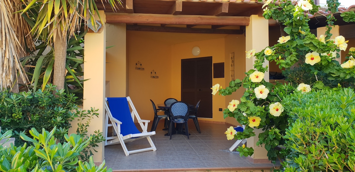 Villasimius, villetta a schiera su 2 livelli con spiaggia a 300 mt raggiungibile a piedi. Vista mare su Porto Giunco, posizione soleggiata, piccolo giardino con barbecue e patio dove poter mangiare all'aperto, lavanderia sul retro. Tranquilla zona residenziale con parcheggio, vicina al centro di Villasimius (ca 1500 mt). Ideale per coppia o famiglia con bambini, adatto per studio/lavoro Tutto incluso: pulizia, asciugamani, lenzuola, consumi acqua, elettricità e gas, Wi-Fi e tasse di soggiorno