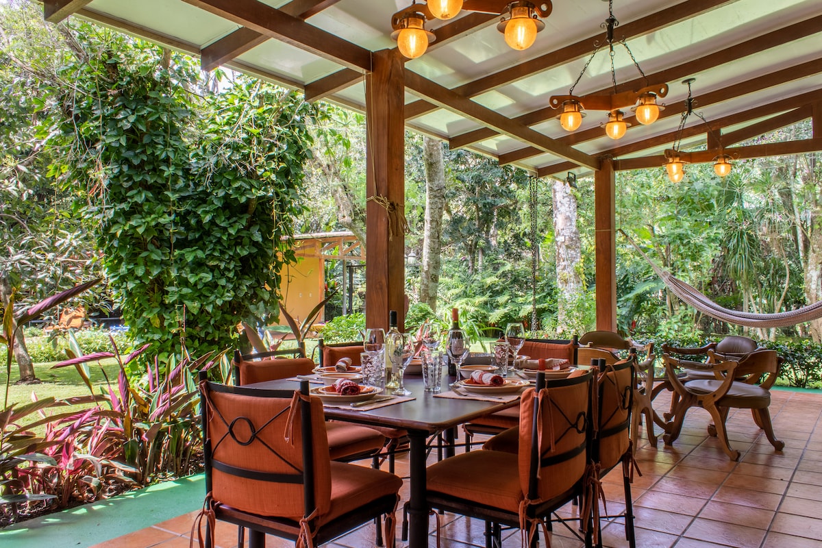 Our house is close to La Fortuna and it's restaurants,hot springs and the La Fortuna Waterfall.There are many adventure and cultural tours including our organic farm. We are surrounded by mountains and nature nestled in the shadow of the majestic Arenal Volcano. Enjoy a unique stay in harmony with nature where toucans,frogs,iguanas,hummingbirds as well as other wildlife are often seen.
