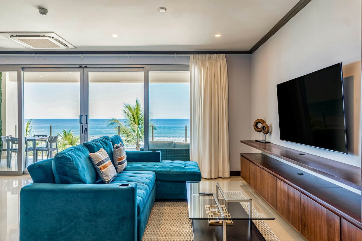 Beautiful brand new beach front Condo in one of the most gorgeous beaches of Costa Rica . Pool right in front, located on the 1st floor with beachfront terrace, 2 bedrooms, 2 bathrooms, fully equipped, 200 mb internet, 2 smart TVs with Netflix, A/C in bedrooms and living room, lots of light and gorgeous views! Located in one of the largest virgin beaches in Costa Rica, direct access to the beach, 5 swimming pools , amazing roof top in 6th floor.
