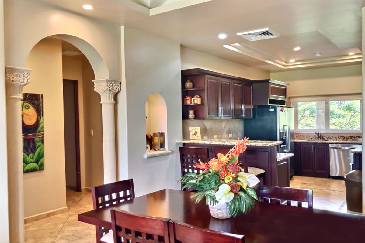 This is the place to be if you want to walk EVERYWHERE! Great ocean view, full AC, and a quiet very safe area. There are several restaurants (including Agua Azul and Emilio's) within 2 minutes walking, a supermarket, and the most famous coffee houses too! A bus stop is 100 yards away if you wanted to Visit Manuel Antonio park (3 min ride to park, $1 bus passes every 20 minutes). You can also walk to Manuel Antonio in about 20 minutes and see tons of Monkeys, Sloths, Macaws and maybe a toucan!