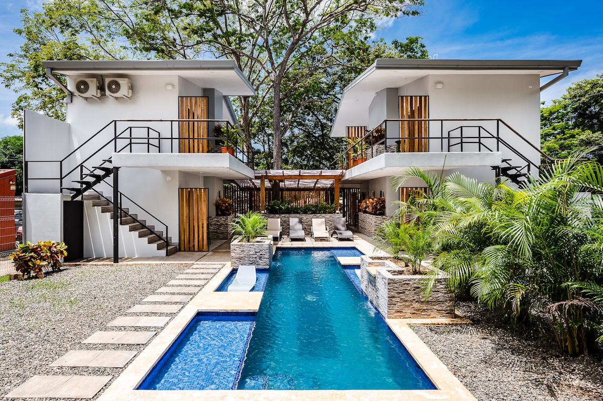 Welcome to Kahwi Boutique Hotel, a serene hideaway surrounded by nature in Tamarindo, Costa Rica. The Cocobolo Suite is designed for couples seeking a romantic, intimate stay with warm lighting, natural textures, and access to our beautiful saltwater pool. 🛏 Queen bed · 🛜 High-speed Wi-Fi · ❄️ A/C · 🍳 Equipped kitchenette · 🌿 Garden view · 🚗 Free parking Experience calm, comfort, and the tropical charm of Kahwi.