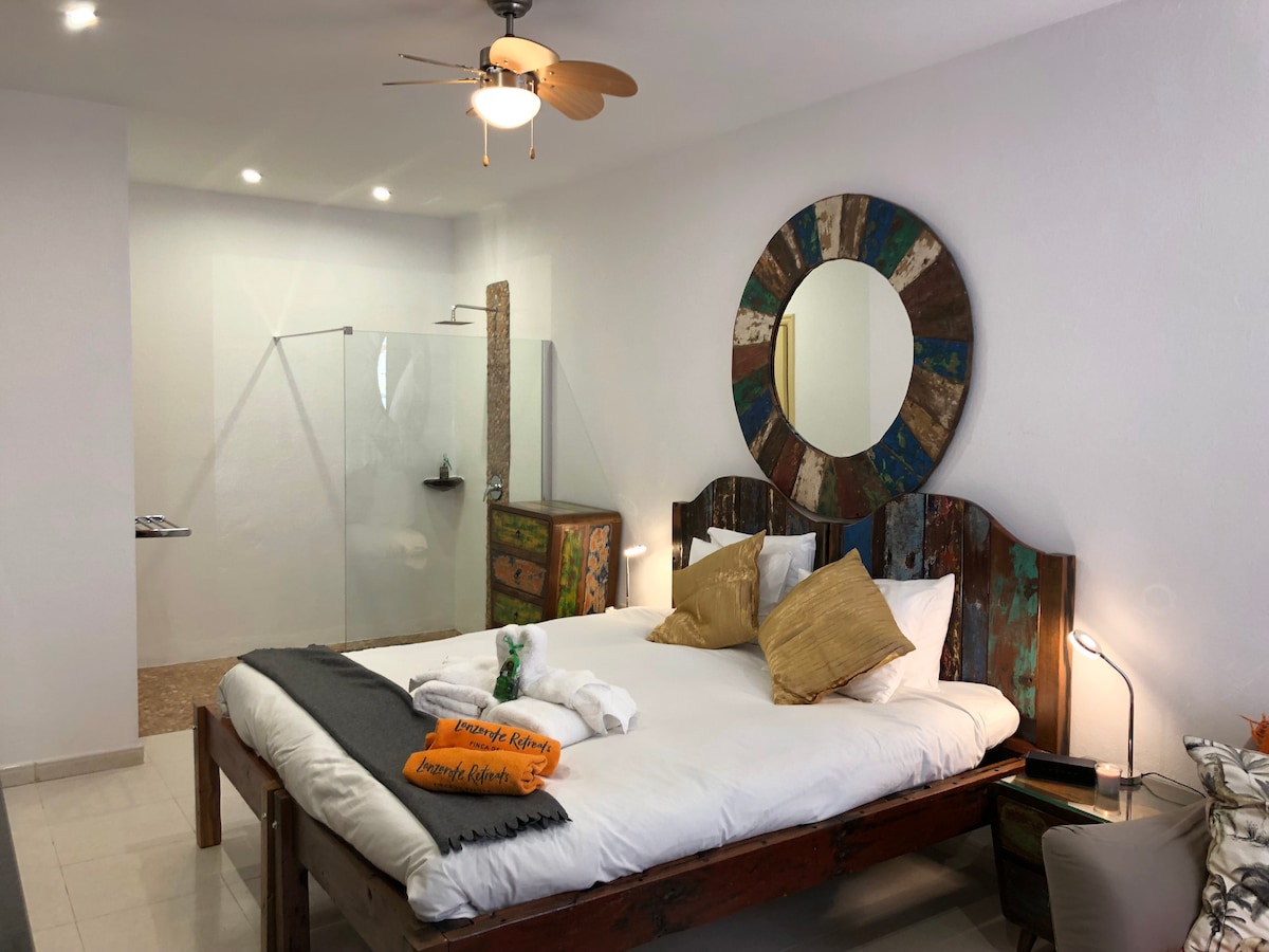 Casa Ola is a newly refurbished apartment located in the excluve residential area Los Molinos, in Costa Teguise which is the sole designed by the master and visionaire César Manrique. The garden, the two pools and the building reflect the particular style you can only find in Lanzarote: white walls, lavic stones and cactus plants. At 300mt walking distance there is Playa Bastían, but you can reach Las Cucharas Beach and the centre of Costa Teguise in less than 15 minutes walk.