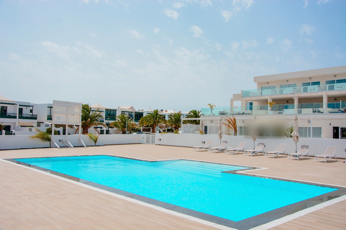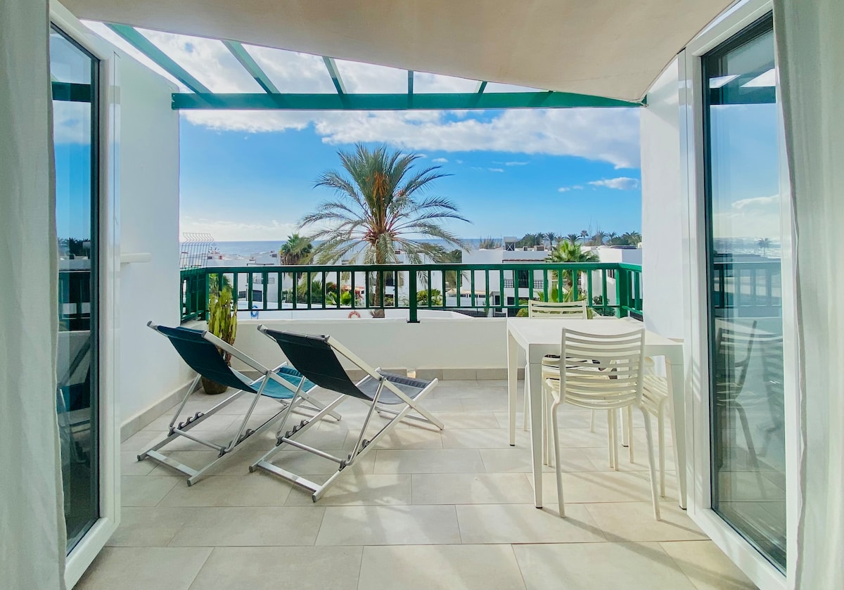 Apart. new, bright, overlooking the sea in one of the best areas of Puerto del Carmen. The terrace is great for breakfast or dinner watching the sea and pool. With all the amenities: Wiffi, air conditioning ,, safe, dishwasher, washing machine, fridge freezer, TV 50 ", kettle, coffee maker, utensils (pots, pans, dishes, cutlery, ...), pool Children + adults, playground, private parking. Bars, restaurants and large supermarket at 300 meters. Chica beach at 500 meters.