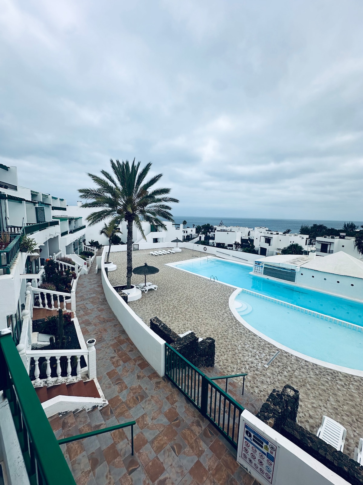 In the Los Molinos complex designed by César Manrique, we find this beautiful one-bedroom apartment on the ground floor without stairs, bright living room ,fully equipped kitchen, large terrace, beautiful and quiet panoramic views of the pool and the mountains. The apartment has WiFi and international tv channels. The complex has free parking, two swimming pools and playground. Located 4 minutes from Bastián beach, around it has a bank, supermarkets, shops and restaurants.