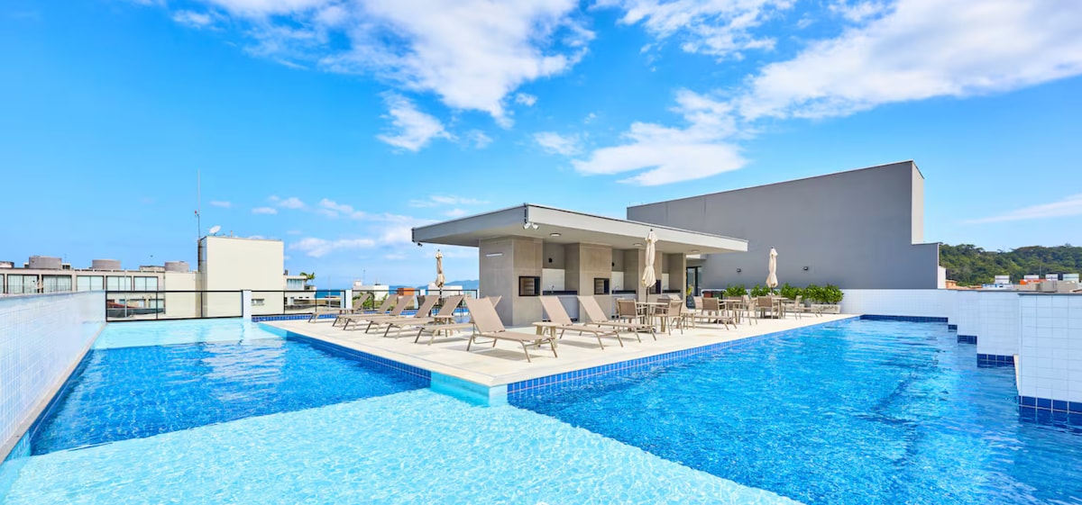APTO PARA PESSOAS DE BOM GOSTO (COLCHÕES CASTOR D45)! ALTO PADRÃO até 6 pessoas em camas - Duas suítes+lavabo - Piscina aquecida - Piscina com borda infinita na cobertura - Churrasqueira privativa - Ar condicionado nas duas suítes - Colchões Castor D45 nas duas camas de casal e na cama de solteiro da suíte 01 - Wi-fi fibra 600mega(exclusivo) - Água filtrada - Smartv - Cooler - Garagem excelente (não precisa manobrar, entra direto na vaga) - Fechadura eletrônica -Condomínio extremamente seguro