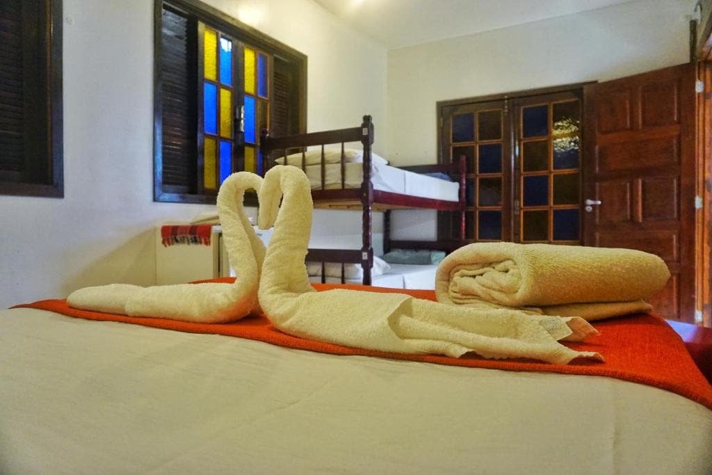 Quarto compartilhado tem capacidade para até 6 pessoas (três beliches). O ambiente é iluminado, limpo e organizado. O banheiro, localizado dentro do quarto, é de uso exclusivo dos hóspedes. O café da manhã não é incluso na estadia, mas esse serviço pode ser contrato com uma taxa adiconal e opcional de R$40,00 por pessoa e por diária. O quarto incluí roupas de cama, mas as roupas de banho (toalha), tem um custo adicional e opcional de R$15,00 por toalha. Você pode trazer ou alugar uma do hostel.