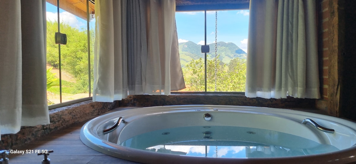 Casa Tempo: O seu Tempo de conexão com a natureza. Mergulhe na tranquilidade, contemple as colinas e recarregue-se com a vista deslumbrante ou com enxoval de algodão egípcio. Aqui, num ambiente exclusivo o tempo serve para reencontrar a essência e criar memórias. Somos um projeto familiar e vivemos no local. Nossa propriedade é fechada e a cabana é cercada, ideal para relaxar em segurança, sem abrir mão do conforto. Seu pet é bem vindo aqui. Insta: @tempomantiqueira