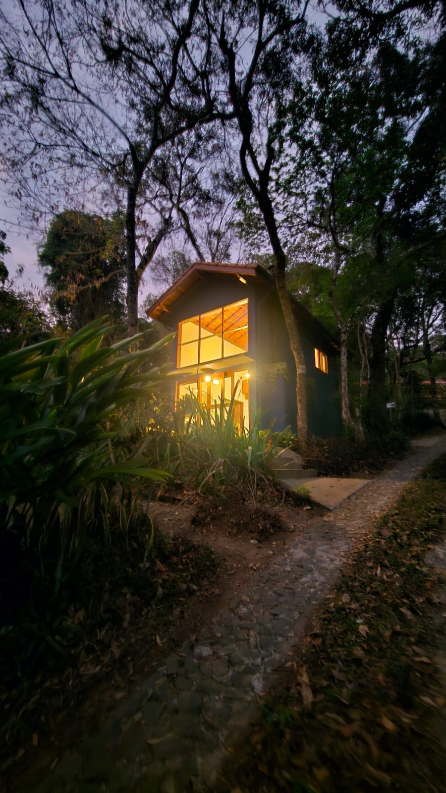 This brand new house sits high above the trees inside the Aldeia Rizoma eco village, a gated property 15 minutes away from the city historical center. The property offers a jungle gym, sauna (paid as an extra), private trails and access to 5 private waterfalls. The one bedroom studio has a king size bed built high so you can watch the forrest from it. It offers a private hot tube and a fully equipped kitchen. There is an extra bed that can be used for a third person with an extra fee per night