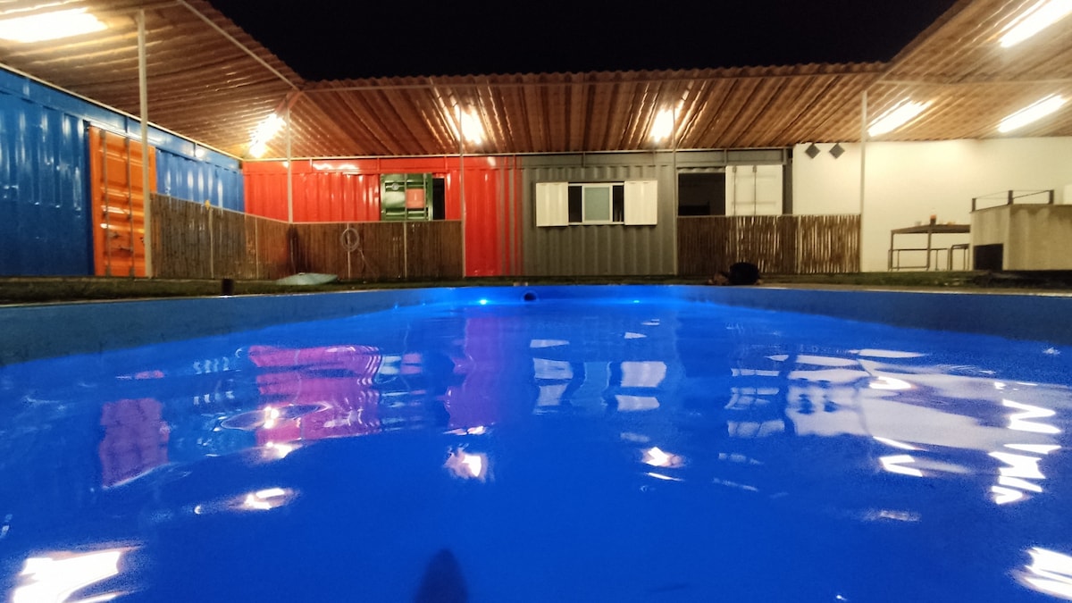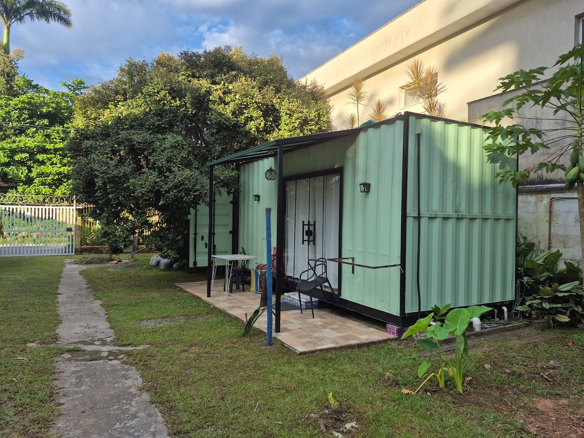 São 2 suítes com camas de casal e ar-condicionado quente/frio, garantindo conforto em qualquer estação. A sala e a cozinha são integradas, criando um ambiente perfeito para refeições e momentos descontraídos. Duas portas do container se abrem para um deck de madeira espaçoso, conectando o interior à natureza e dando acesso ao quintal arborizado. Com Wi-Fi de 500 MB, duas vagas de garagem e energia solar, essa casa une sustentabilidade, conforto e natureza, criando um refúgio ideal para relaxar.