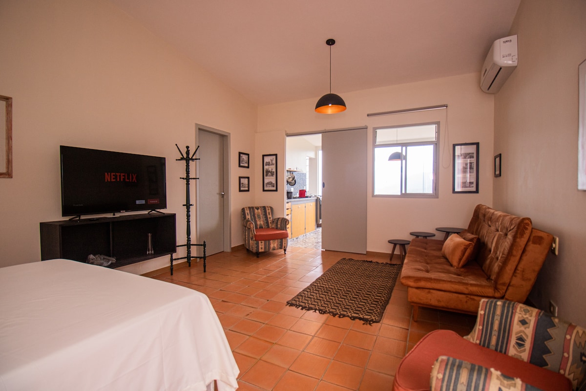 Vivencie morar em um dos conjuntos coloniais mais antigos e preservados do Brasil, em uma pequena cidade cercada de natureza, entre o mar e a montanha. Acorde ouvindo passaros, tenha em poucos passos os melhores restaurantes da cidade assim como caminhadas lindas, fácil acesso aos passeios de barco e saídas de City Tours. Tudo isso em um aconchegante e espaçoso studio que também conta com um quintal com área coberta para momentos de lazer e trabalho. Internet 100mbps.