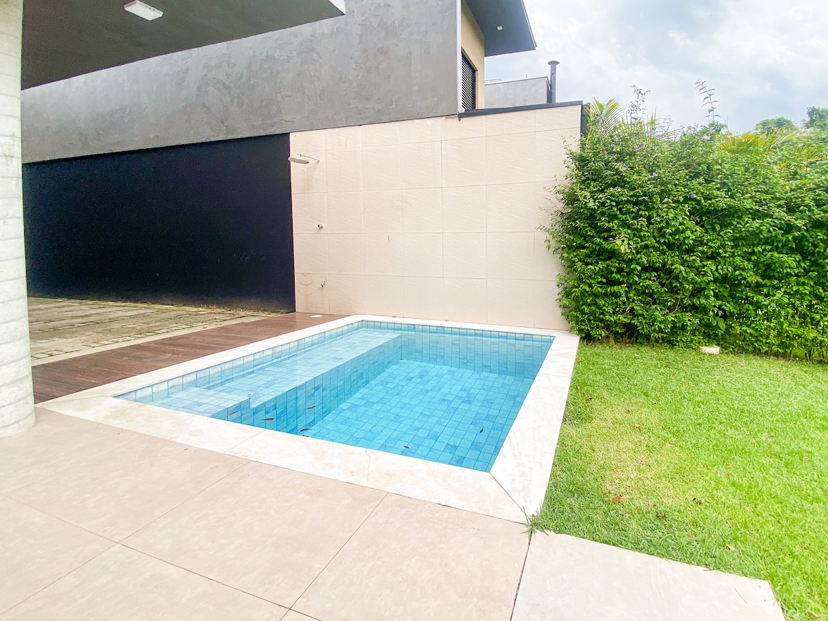 2 suítes e mezanino para 6 hospedes. Ar condicionado, Smart TV. Cozinha americana completa, varanda com rede e churrasqueira. Amplo gramado e estacionamento para 4 carros.Piscina privativa de 4X3 m., com espreguiçadeiras, mesas, cadeiras e guarda sol para refeições ao ar livre . Piscina protegida para segurança de crianças e pets.Taxa de R$250,00 para 2 pets. Podem ocorrer eventualmente falhas na internet, queda pontual de energia elétrica e barulhos de obras e outros nas vizinhancas