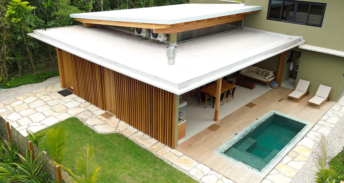 Brand new house in a quiet, paradisiacal place with total privacy, inserted in the Forest next to Parque da Bocaina in Paraty: + Panoramic view of the Valley and the Forest + 2 cozy rooms (suites) for up to 4 guests + Heated infinity pool + 100 Mbps High Speed Internet + Hot and Cold air conditioning + Private Waterfalls + Full kitchen + Gourmet Area with Barbecue and Wood Oven + 100% paved access, 10 km from downtown Paraty