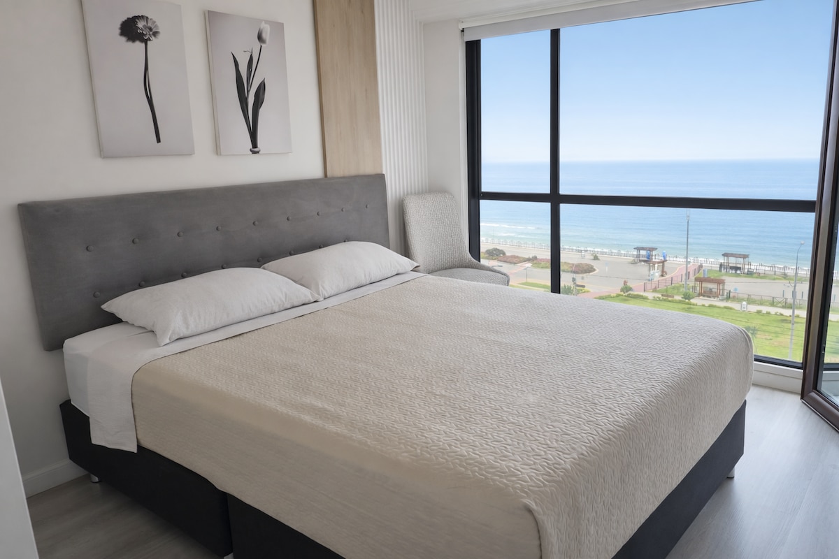 Relájate con el sonido de las Olas, disfruta de una EXCLUSIVA vista al mar desde el confortable Apart, espacioso, equipado, lleno de detalles en Malecón Costanera DESCANSO PREMIUM Habitacion principal Cama Queen, Hab secundaria cama Matrimonial. Área de trabajo, Wifi de Alta velocidad, 2 Smart TV, 2 baños completos. Acceso al circuito de playas, a minutos del aeropuerto y de distritos como San Isidro, Miraflores y Barranco. se habilita la 2da habitación SOLO CON RESERVA de 3 huéspedes