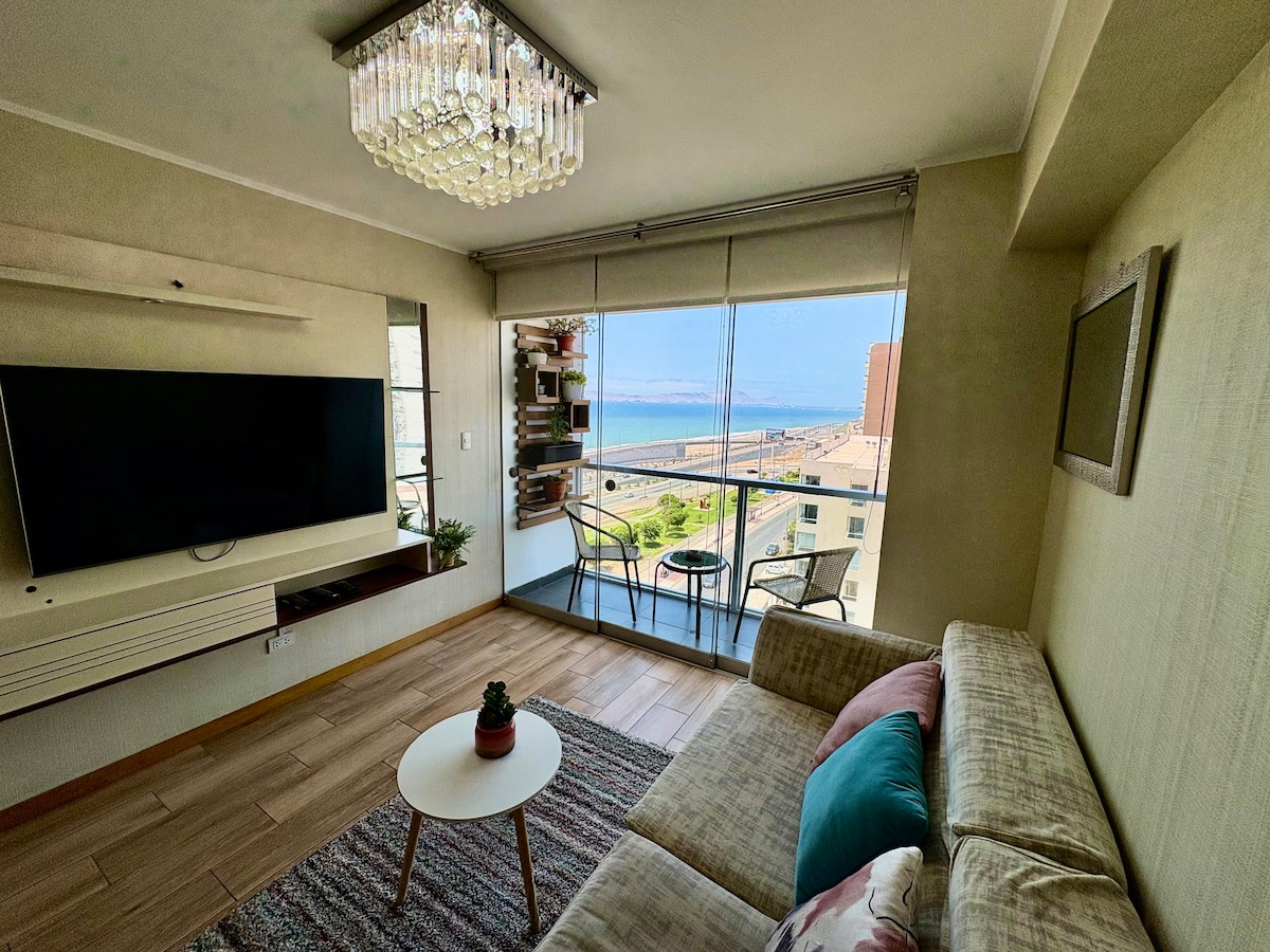Despierta con la vista más espectacular del Océano Pacífico. Este elegante departamento frente al mar ofrece una experiencia única con balcón panorámico, diseño moderno y todas las comodidades para una estadía inolvidable. Perfecto para disfrutar atardeceres mágicos, descansar con el sonido de las olas y vivir la mejor ubicación costera. Ideal para parejas, viajeros o estancias románticas.