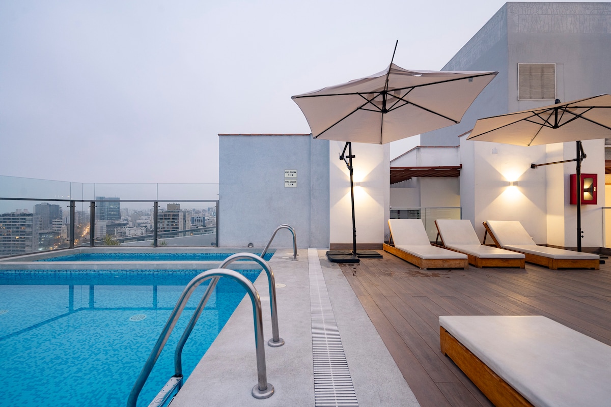 Beautiful smart rooftop Loft in the middle of Miraflores, it has a great view, great location, privacy, and security. Unlimited Hot water on the hot tub (Heater upgraded recently sept-22) so the hottub will be HOT guarantee, Half kitchen, led TV with cable Fast and reliable Wifi. walking distance to supermarkets, and everything. there is only one downside its on the 6th story with NO elevator, but is worth it for the view. You can control tv, music,blinds and lights using Alexa.