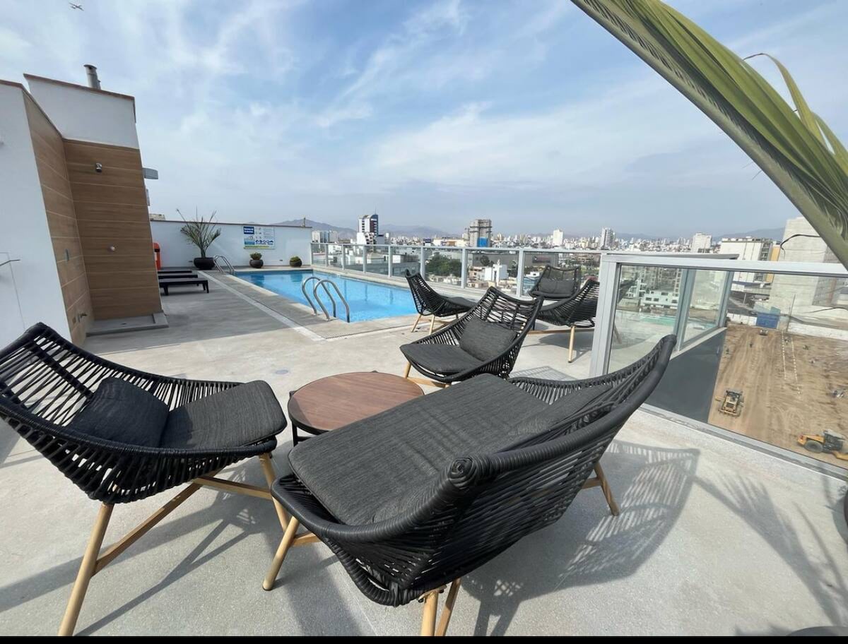 Cozy apartment, fully equipped and furnished to make your stay as comfortable as possible. Just 20 minutes from the airport and 15 minutes from Miraflores (located in San Miguel). Features a Queen-size bed, Smart TV, and a romantic balcony, plus a fully equipped kitchen. Common areas: Swimming pool available from Tuesday to Sunday. IMPORTANT: the pool will be under maintenance during October and november 2025.