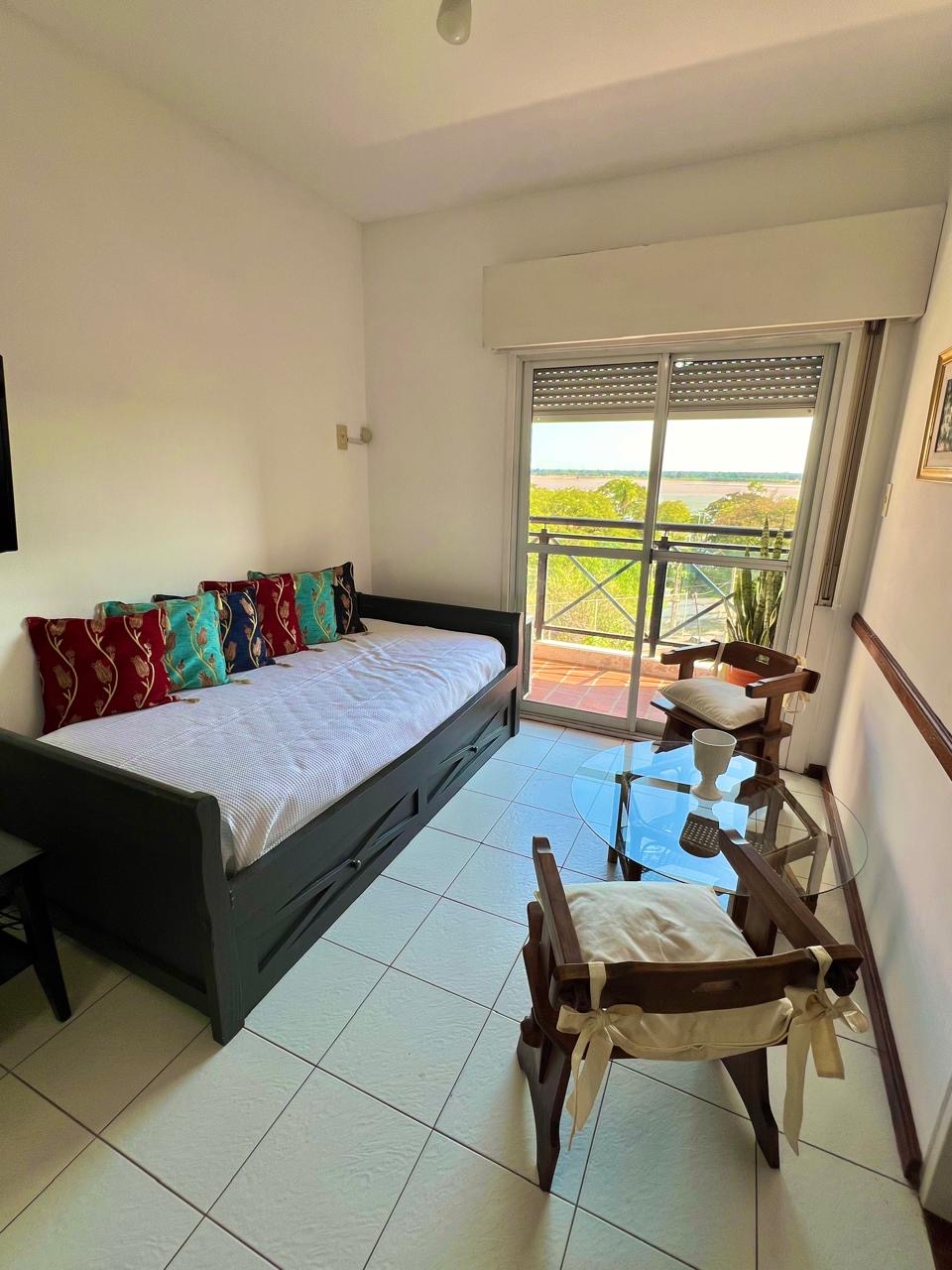 Disfrutá de una experiencia con estilo en este alojamiento céntrico a tres cuadras de la costanera, con balcón. Ultimo piso con terraza y solárium con vista al rio Paraná y quincho con parrilla. Un dormitorio con somier doble y sofá cama de dos plazas individuales. Instalaciones y decoración a estrenar todo nuevo!