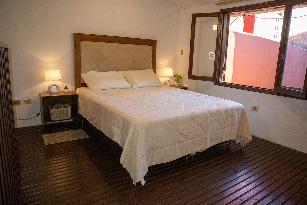 Comfortable 1 bedroom apartment with double bed, kitchenette, dining room, bathroom and outdoor terrace located in the center of Asunción. Close to the historic center and the main points of the city.