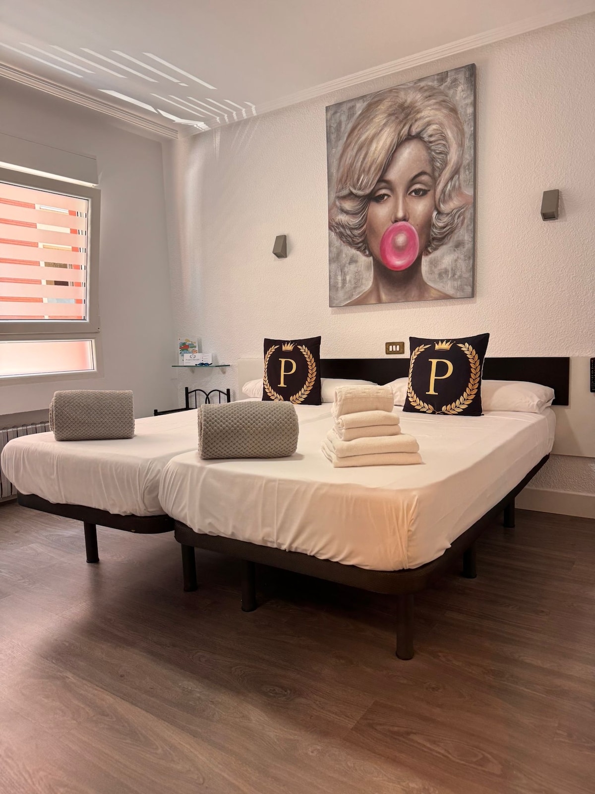 Habitacion con capacidad para 2 personas compuesta por una amplia cama de 150. También dispone de baño privado, nevera y un pequeño balcón con vistas a la calle. *se aceptan mascotas,consultar condiciones.