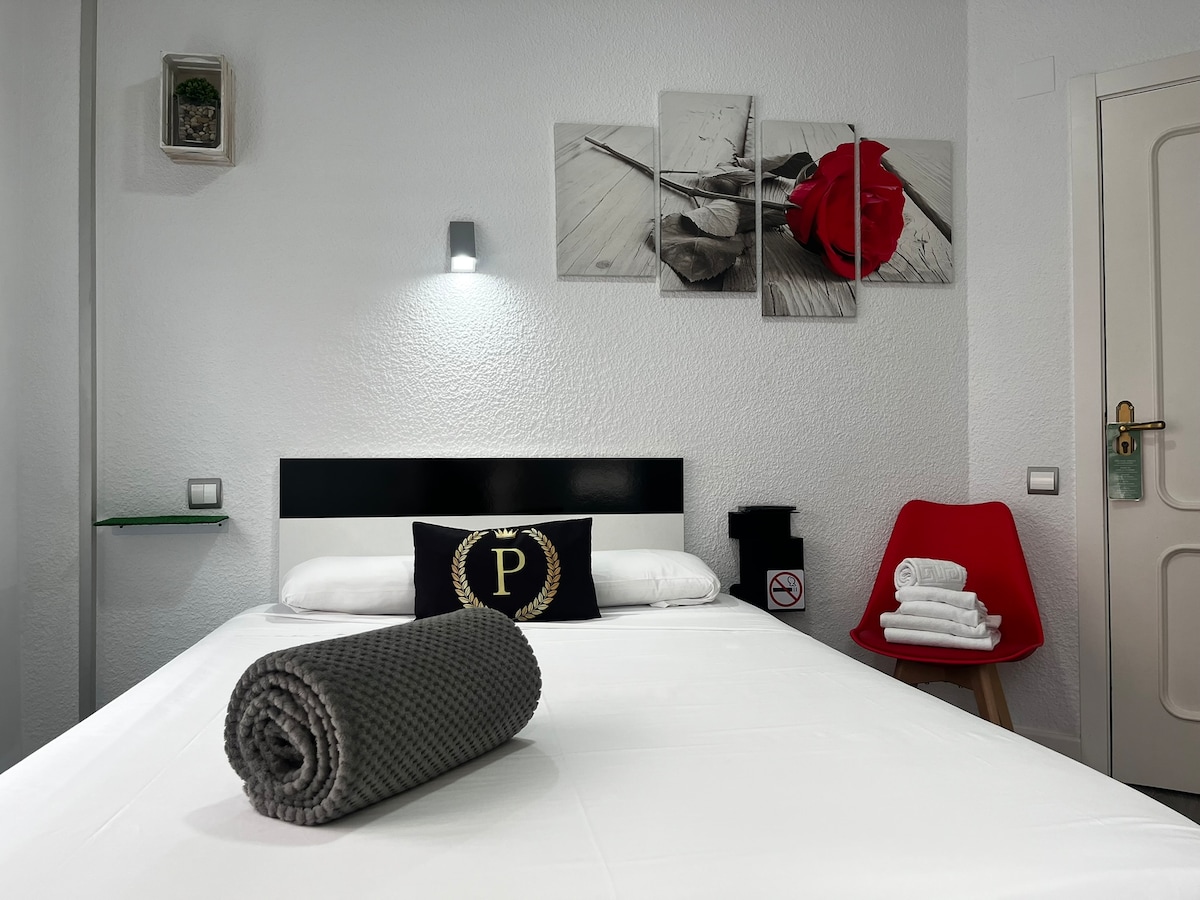 Habitación privada de 25m2, con capacidad para 2 personas en moderna pensión ubicada en un céntrico barrio de Bilbao, a 100m de la ría, Campo Volantín, puente Zubizuri ayuntamiento y a 10 minutos andando del museo Guggenheim, perfecto para disfrutar de una estancia tranquila y cómoda para disfrutar de la ciudad. Acceso a la pensión y habitación con códigos por lo que el check in no es presencial y se evita el contacto personal. Disponibilidad vía telefónica las 24h del día.
