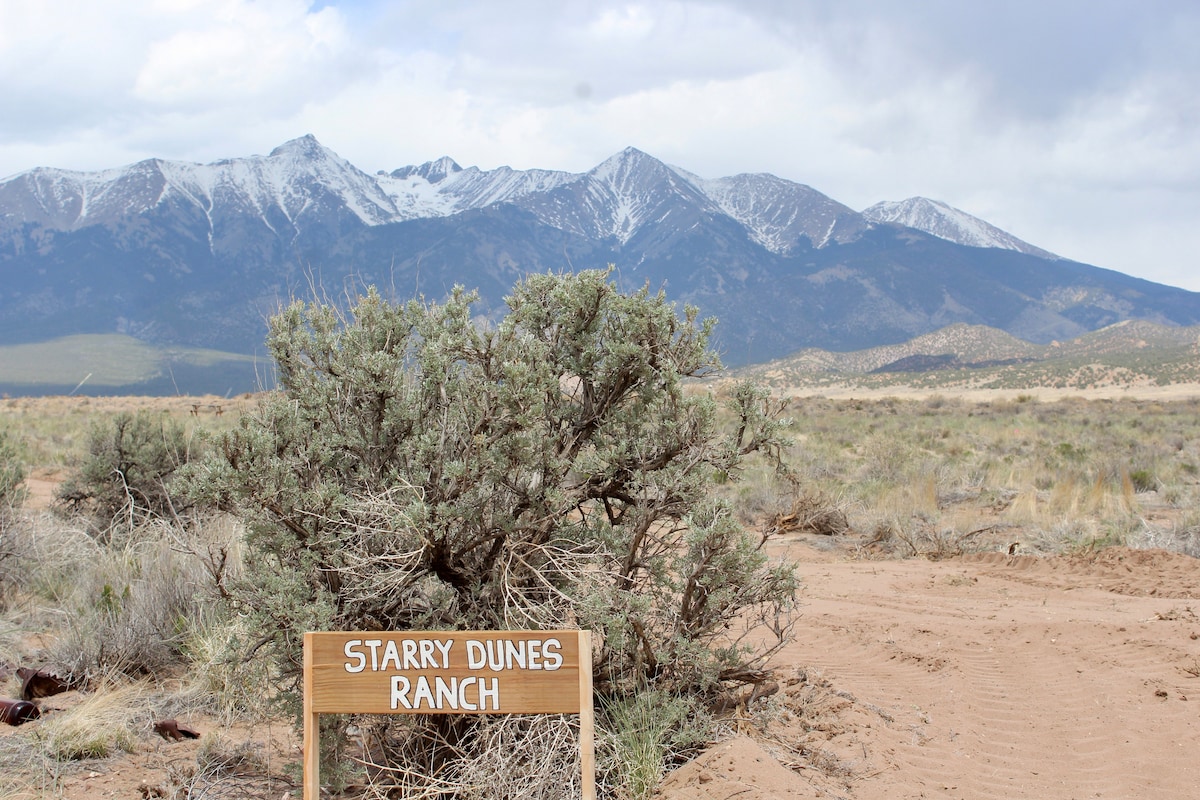 Relax w/ the whole family at this private cabin. Stunning 360 degree mountain views, only 30 minutes to Alamosa. Allows easy access for shopping, restaurants, & breweries. With plenty to see at the ranch (entertaining farm animals) & many activities to do close by, you are sure to have a great stay! Amongst the closest stays to the The Great Sand Dunes National Park & surrounding 14ers! Spectacular sunrises/sunsets & zero light pollution makes it hard to count all the shooting stars you'll see!