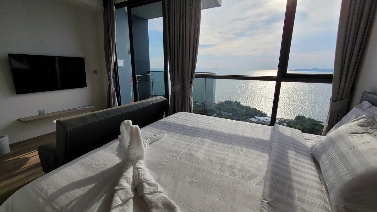 "Beautiful Condo and Location is excellent. The view from the balcony in the morning was breathtaking out into the ocean" - Jason ☆ Airbnb Superhost since 2015 ❤ Stunning Sea & City view ❤ Smart TV ❤ Fast Internet ❤ 1 bedroom / studio convertible ❤ Full equipped ❤ Quiet & Relaxing ❤ Sky pool and Jacuzzi ☆ Mini mart downstairs ☆ Beach access (1 min walk) ☆ Pratumnak Night Market (10 min. walk) ☆ Walking Street & Bali Hai Pier (10 min.)