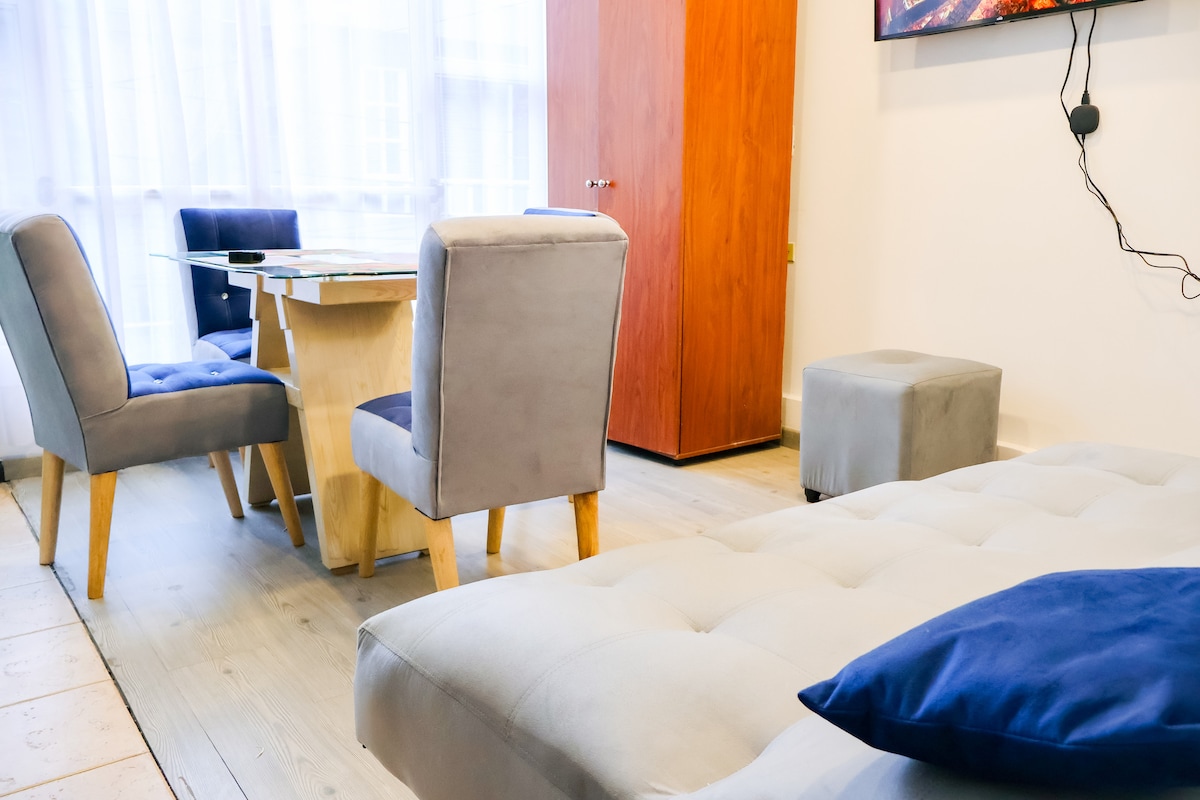 Discover the charm of this 33 square meter apartment in the north of Bogotá, behind the North Point business area. It offers a safe, cozy and relaxing space with a jacuzzi, a workstation and Smart TV. The residential complex has a BBQ terrace, boxing area, gym, co-working and ping pong. Enjoy a vibrant and comfortable lifestyle in this unique location. Welcome!.