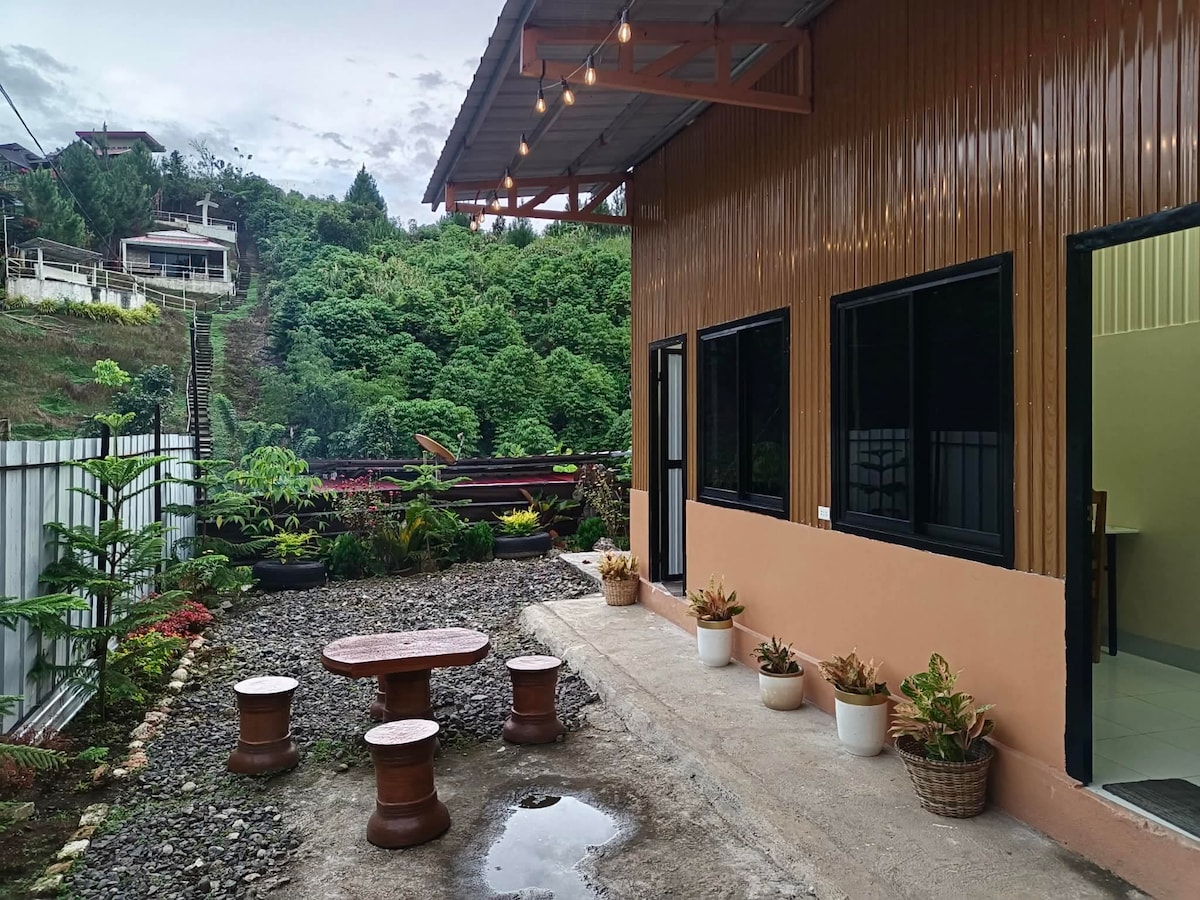 A cozy hillside stay along the highway; available 2 private rooms, each featuring a double sized bed good for couple, solo, or small family (extra foam also available) and private CR with easy parking outside-simple, comfortable, and convenient.