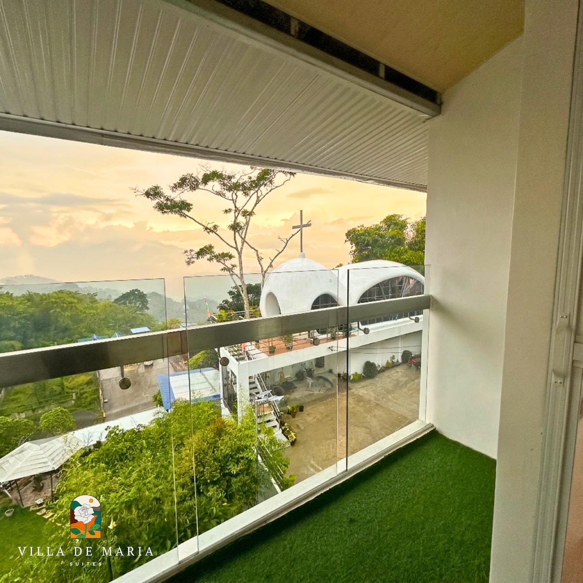 Emerald Suite of Villa de Maria is a spacious loft-and-dorm-style haven perfect for 12–15 guests. Enjoy cozy living and dining areas, a 43" Smart TV, and a refreshing hot & cold shower with complete toiletries and a hair dryer. Unwind on the big balcony or at your private coffee corner with stunning views of the chapel and sea of clouds. With free Wi-Fi, fresh towels, and access to Villa de Maria’s gardens, pond, and gazebo, this suite offers the perfect blend of comfort, space, and serenity.