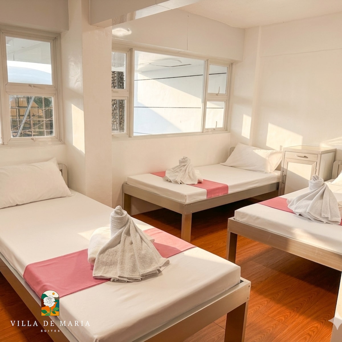 Opal Suite of Villa de Maria Suites is a cozy dorm-style stay perfect for families or groups of 7–9 guests. Relax with a 43" Smart TV, free Wi-Fi, and refreshing hot & cold showers complete with hair dryer, towels, and toiletries. The naturally cool climate makes every night peaceful and relaxing. Guests also enjoy full access to Villa de Maria’s charming chapel, gazebo, pond, and gardens—ideal for unwinding or bonding with loved ones in a serene mountain setting.