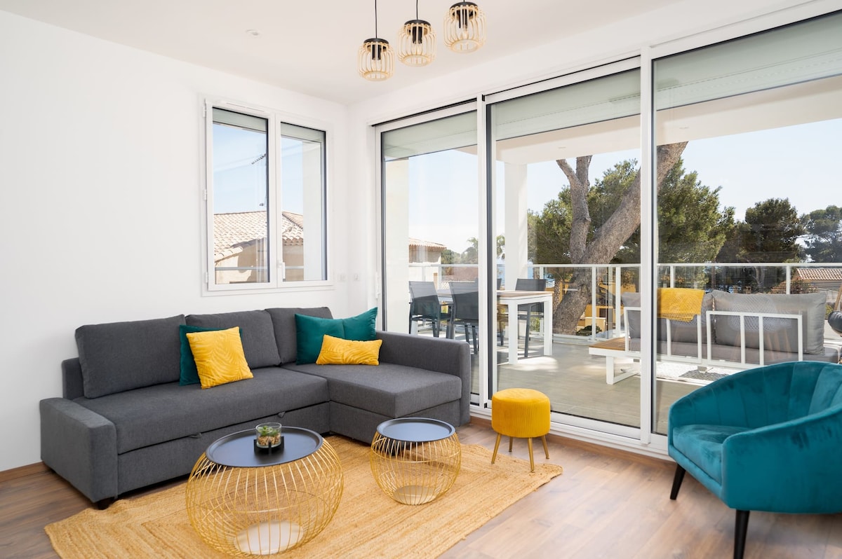 In quiet co-ownership, this provençal style house, 10 people, more contact us comfortable, welcoming and decored tastefully with quality enjoyes a beautiful sea view from the living room and terraces. WINTER 23 JOIN US The VILLA with garden, atypical, charm, character, is nested at the heart of a creek of the Côte Bleue in Provence, between the Camargue and Marseille, overhanging the landscape, in a private and reassured area to take advantage of the peace and the tranquillity.