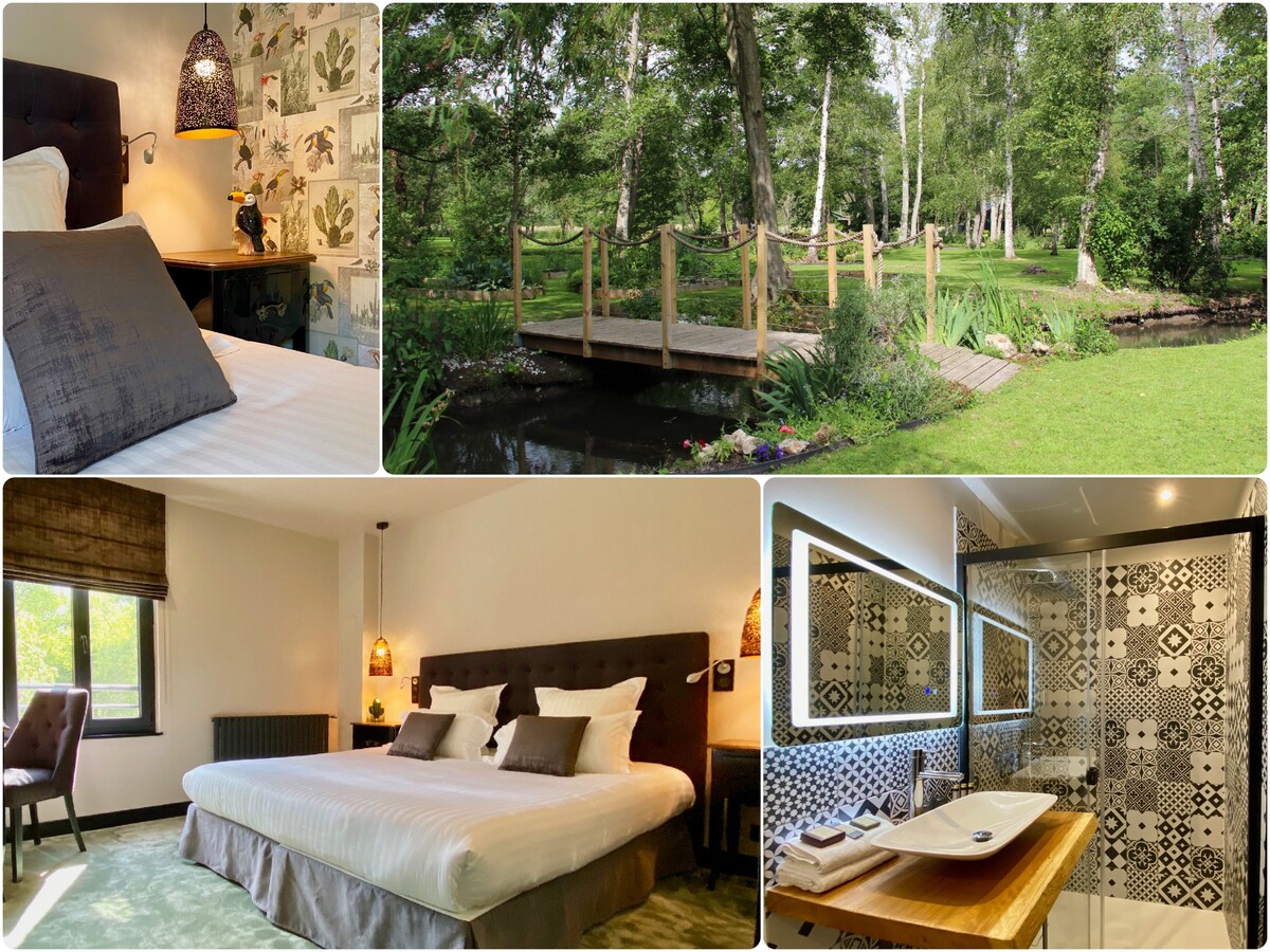 Located in the heart of a wooded park on the banks of the Charentonne river, Le Moulin Fouret is a 16th century building completely renovated, turned into a Boutique Hotel*** and Restaurant. Composed of 6 rooms overlooking the park, it is a haven of peace, 5 minutes from downtown Bernay.