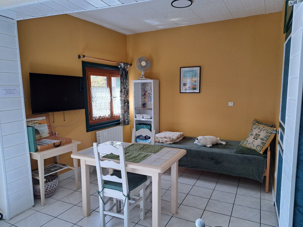 Jolie dépendance au calme avec petite chambre, séjour avec canapé convertible pour dépannage, mise à disposition d'un micro-ondes, cafetière, bouilloire, grille pain, frigo pour vos petits déjeuner. Bien qu'il n'y ai pas de cuisine une terrasse plein sud privative avec son jardinet et un barbecue vous permettront de prendre vos petits déjeuner et vos repas improvisés en toute quiétude. Le linge de lit et de toilette est fourni. Je peux vous proposer gracieusement 2 vélos pour vos balades.