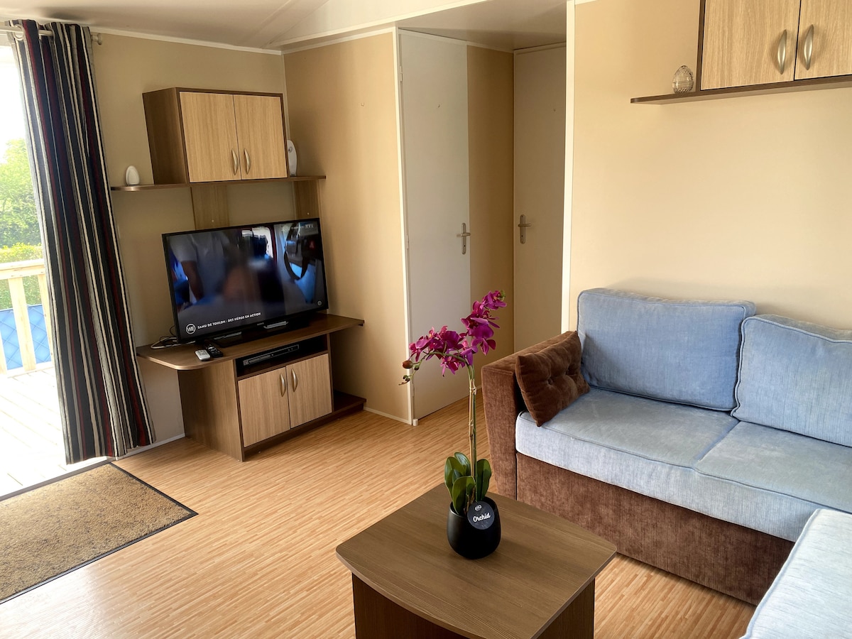 Lodge pour 4 personnes: Tout équipé et entièrement neuf il se compose : d'un petit coin salon avec télé, cuisine équipée four, frigo, micro-onde, plaque de cuisson, vaisselle... Petit coin-repas, Salle d'eau avec douche lavabo,toilette séparé Chambre parentale avec dressing Chambre avec deux lits d'une personne plus penderie Une terrasse semi-couverte, avec barbecue charbon, transate, salons de jardin avec un espace pelouse...