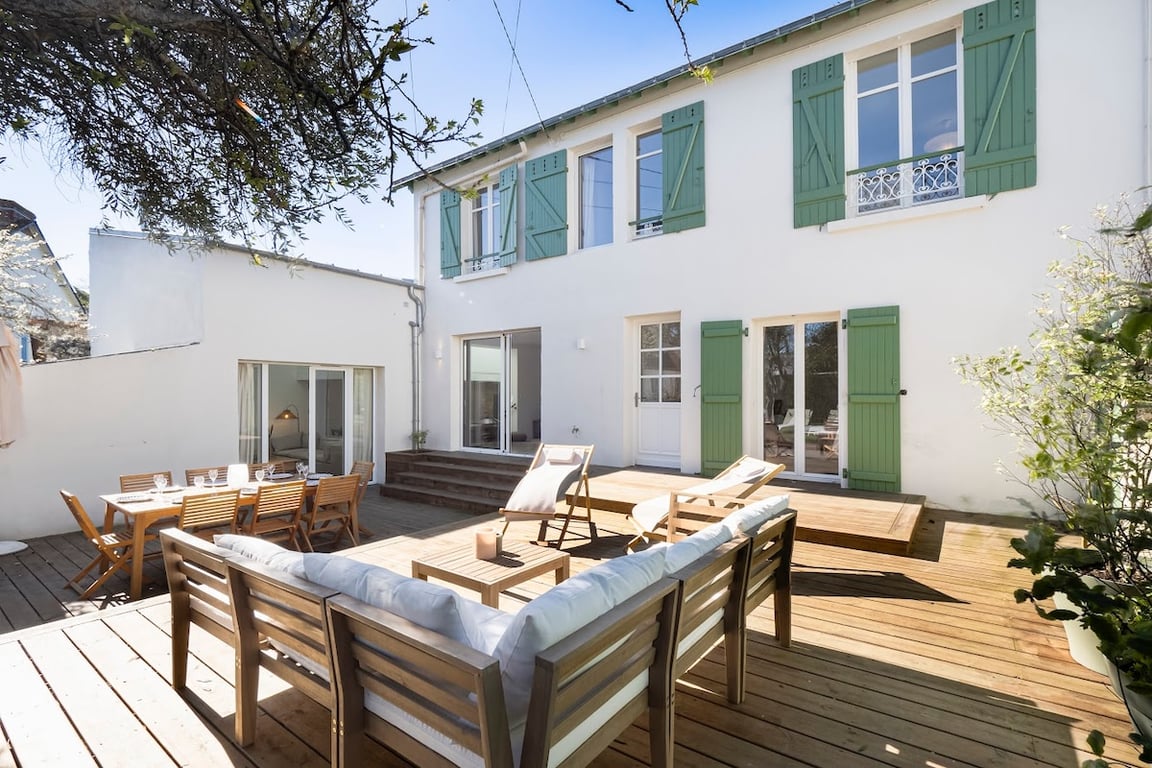 Vous serez séduits par « La Mouette Rieuse » maison de 1920 entièrement rénovée offrant confort et décoration soignée avec tout le charme de cette époque Au RDC belle pièce de vie avec sa cheminée, cuisine parfaitement équipée et disposée en verrière, coin bureau, salle d’eau avec WC, buanderie. A l’étage 3 chambres et SDB Cuisine d’été à l’ombre de la pergola, coin bar pour la convivialité, salon avec table basse sur terrasse bois. Logement raccordé à la fibre