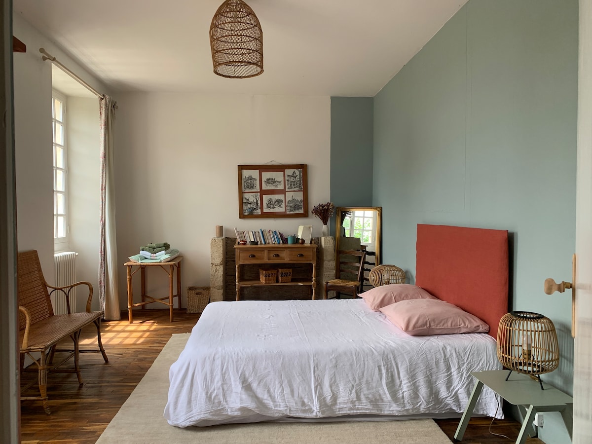 Venez profiter du calme et du charme de la pierre, dans notre maison riche d’histoire nous avons souhaitez vous offrir un lieu de détente et d apaisement. Idéalement situé aux portes de St Emilion, de l Entre deux mers, à 40mn de Bordeaux et 1h15 du bassin d Arcachon, offrez-vous un moment à deux loin du tumulte des grandes villes. Le grand jardin familial dispose d une piscine accessible à la belle saison et nos amis quadrupèdes sont les bienvenus. Au plaisir de vous recevoir