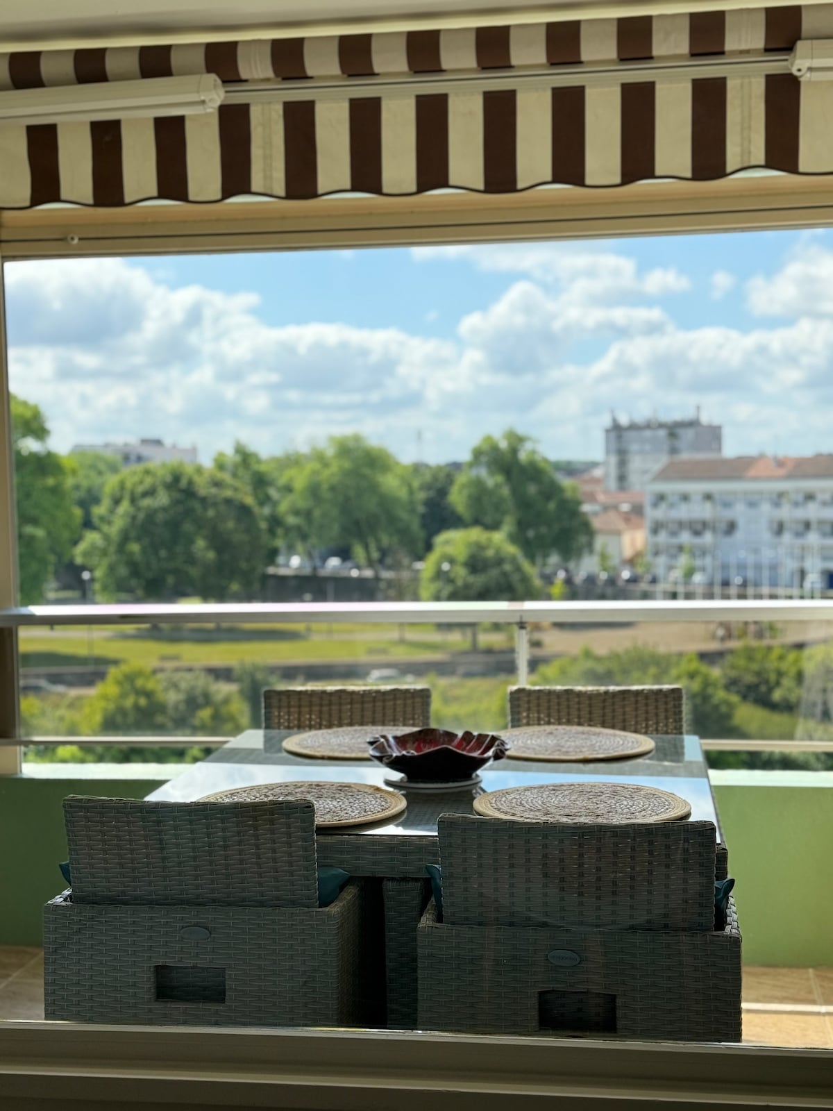 Bienvenue dans ce bel appartement paisible, offrant sans doute la plus belle vue de Dax, entre le parc des Arènes et le mythique hôtel Splendid. Idéal pour les curistes, les amateurs de bien-être ou les voyageurs en quête de calme, l’appartement est entièrement équipé pour que vous vous sentiez comme chez vous. Détendez-vous face à l’Adour, profitez des promenades en bord de fleuve et du charme unique de Dax à quelques pas. Votre confort et votre tranquillité sont notre priorité.