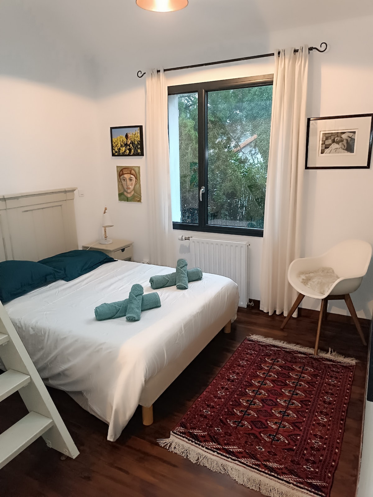 Que vous veniez en train, en bus, en voiture... un havre de paix vous attend ! Maison dans le bourg de Ste Marie avec jardin, à 100 m. des commerces, 300 m. des plages, Très lumineuse, chauffage au sol et poêle à bois en agrément. Literie de qualité en mezzanine. 2 vélos à votre disposition. Local sécurisé pour vos propres vélos. Jardin de charme, sans vis à vis, hamac, chaises longues, terrasse et balcon pour déjeuner. Forfait ménage non compris, possibilité de réserver sur place.
