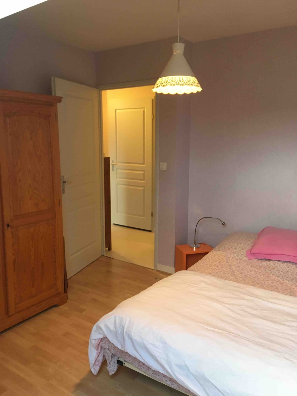 Logement indépendant, mitoyen avec les propriétaires. Entrée indépendante, donnant sur route. Composé d une salle d eau avec WC, porte coulissante,d une cuisine (plaque, four,micro-ondes ,réfrigérateur, cafetière filtre,cafetière Nespresso, bouilloire, grille-pain), d'un espace salon(BZ)/s à manger. Un escalier de meunier avec rambarde vs mène à l étage. Velux.Divers rangements. Une place de stationnement se trouve sur le trottoir d'en face. Pour 1 nuit il vs faut ramener draps et serviettes.