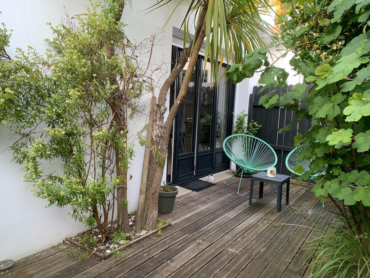 Maison 50m2 où il fait bon vivre avec grande cour extérieure fermée plein sud. Situation idéale, proximité de tous commerces et plages. Animaux acceptés, la cour est totalement fermée, pas d'herbe mais une pelouse synthétique. Je vous indiquerai un sentier pietonnier pour faire leurs besoins. Ménage reste à la charge du locataire. Le linge de toilette et de maison sont fournis, possibilité de location de draps(10€ par paire). Jeux de société à disposition