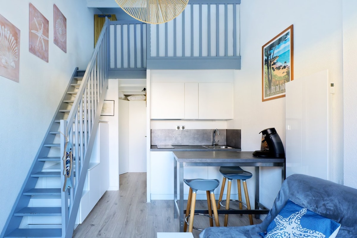 A cozy apartment, in the heart of a wooded garden, in the center of Pornic Old port, market, shops, train station and customs path, you can do everything on foot in less than 10 minutes. Completely independent, the apartment benefits from the living environment of our family home: wooded garden, terrace, shared swimming pool, car and bicycle parking. Put down your suitcases and enjoy a cozy and functional interior, beds made on your arrival, quality bedding and linens.