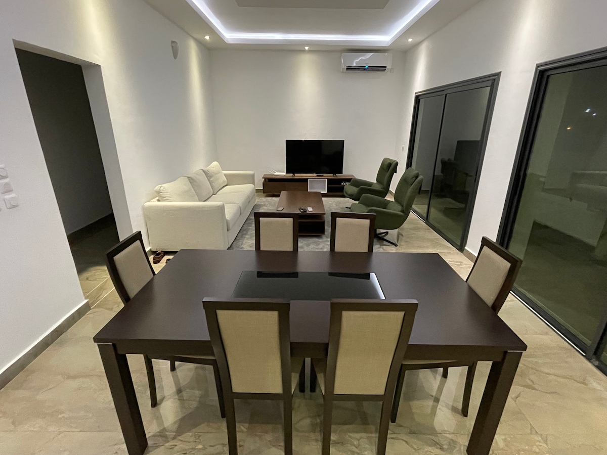 Décor somptueux, le calme à proximité, quartier chic, les déplacements faciles à n'importe quel moment. des maquis , restaurants et boîtes de nuit à 10 minutes de route en voiture.