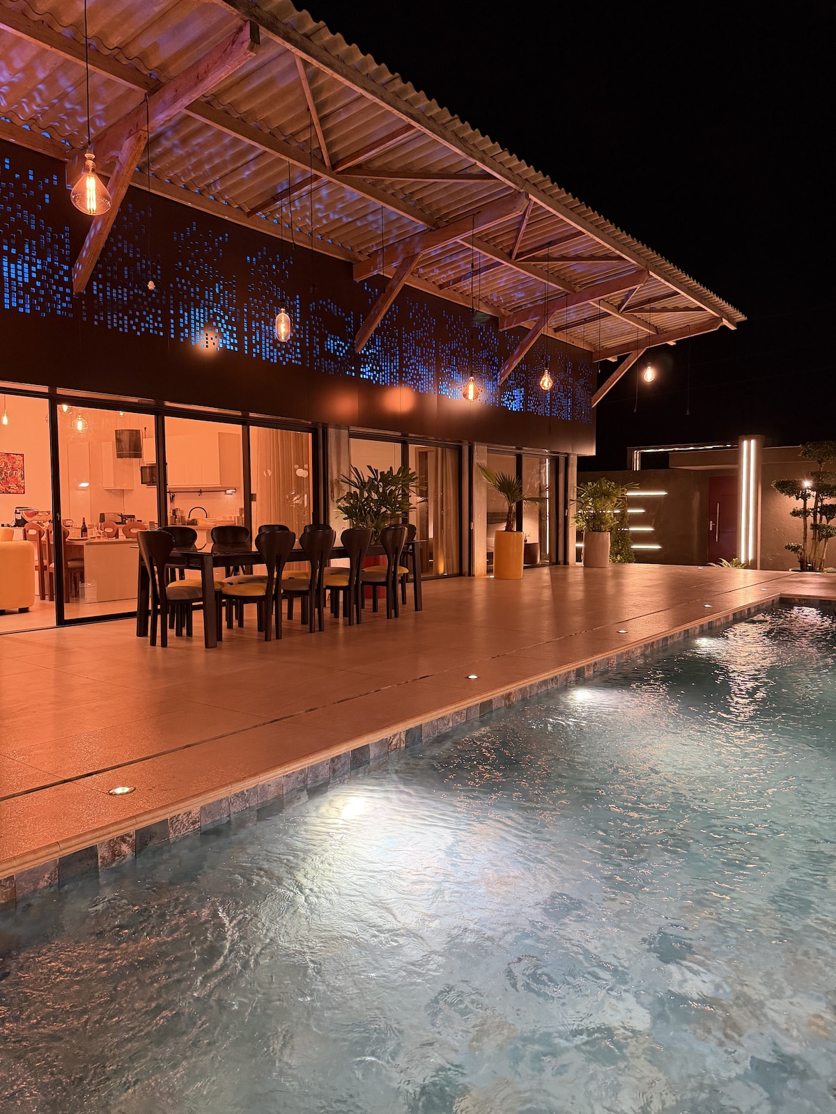 Profitez du meilleur spot d’Abidjan, à Cocody Angré 8è Tranche ! Ici tout a été pensé pour que vous vous sentiez vraiment bien : une grande terrasse aménagée privée pour vos apéros au coucher du soleil, un espace extérieur fermé avec son propre bar pour des soirées à l’ambiance tropicale et une déco intérieure unique qui mêle modernité et vibes africaines. Nous proposons aussi des services supplémentaires: • Véhicule/Massage/Pressing/Restauration/Décoration à thème/Acheminement vers aéroport