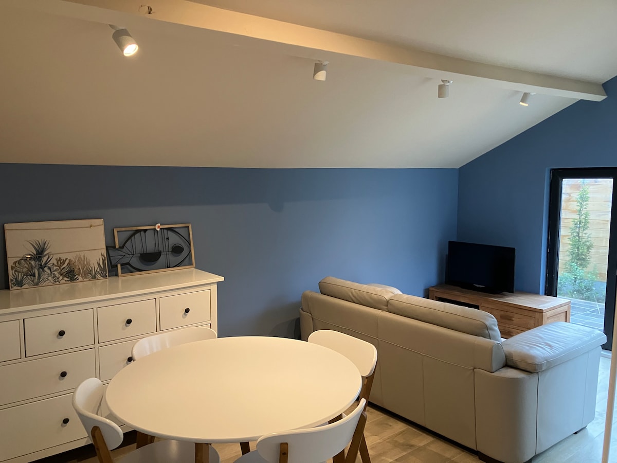 Faites une pause nature et iodée .Détendez -vous dans cette oasis paisible et cosy . En duo ou en solo pour les amoureux de la nature. Garez votre véhicule et accédez *aux commerces essentiels : 10mn à pied et 2 minutes en voiture *au bord de mer: 3 mn en voiture 15mn à pied par chemin côtier *au golf : 3mn en voiture Vélo route européenne à 1mn en vélo Marchés dans le village 2x/sem ou 3x/sem en saison Cours de yoga sur demande